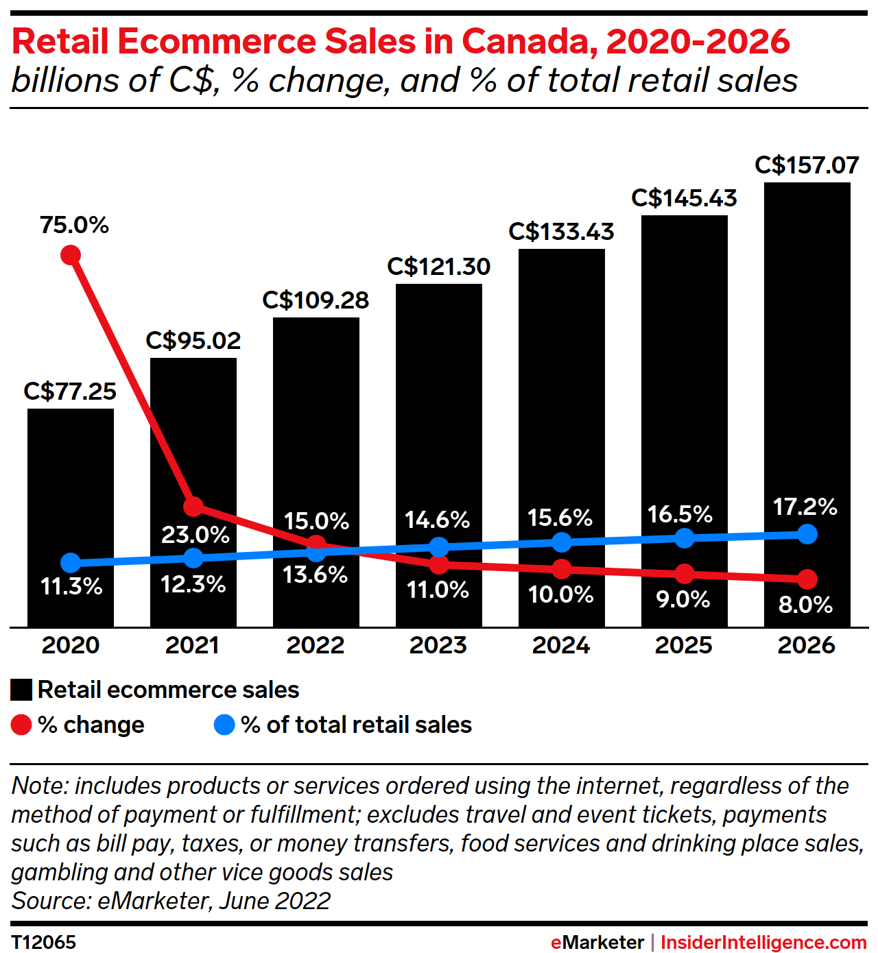 Canadian ecommerce is set to jump 15%, reaching CA $87.16 billion ($64.98 billion) this year, and it will expand its reach to 17.2% of total retail by 2026, per our forecasts. Partnering with the market’s largest etailer could help Affirm accelerate its growth and crowd out the competition in a burgeoning sector, giving it a lasting advantage in the market.