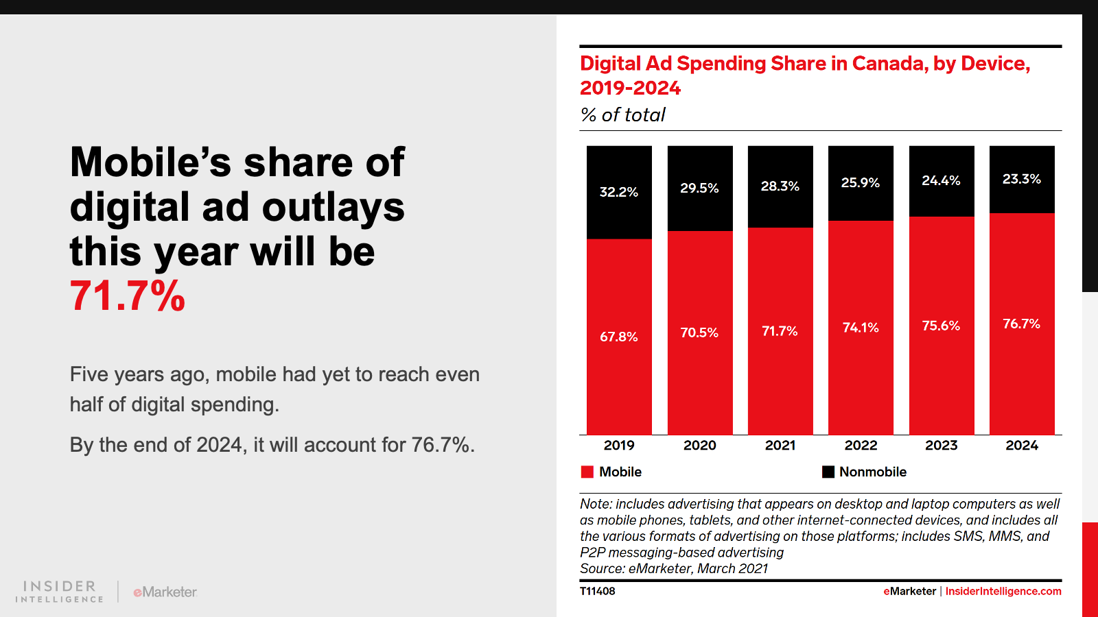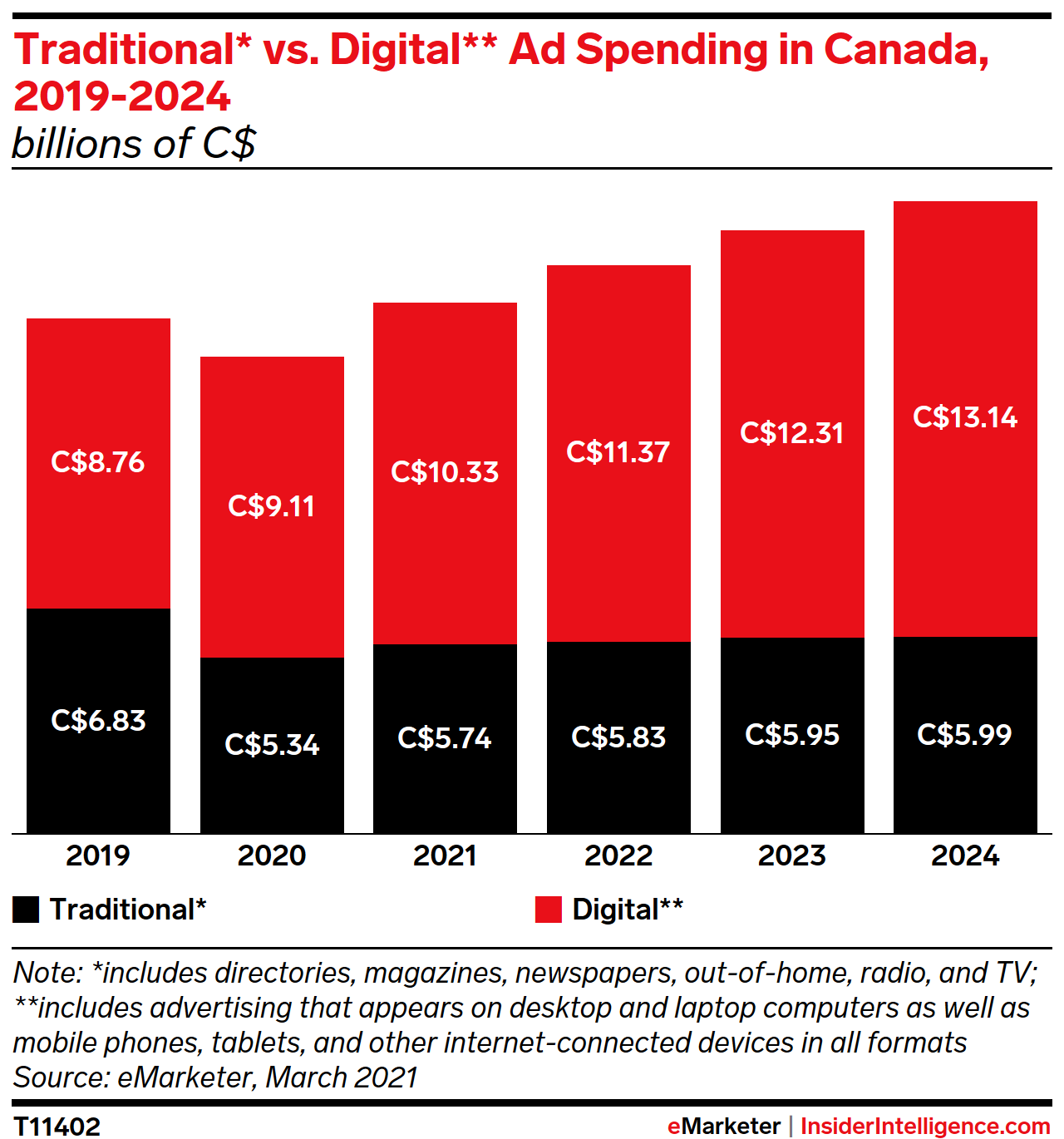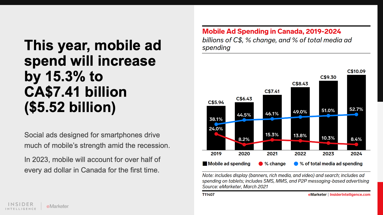 KEY STAT: Digital ad spending in Canada will surpass CA$10 billion ($7 billion) this year, accounting for 64.3% of total media ad spending.