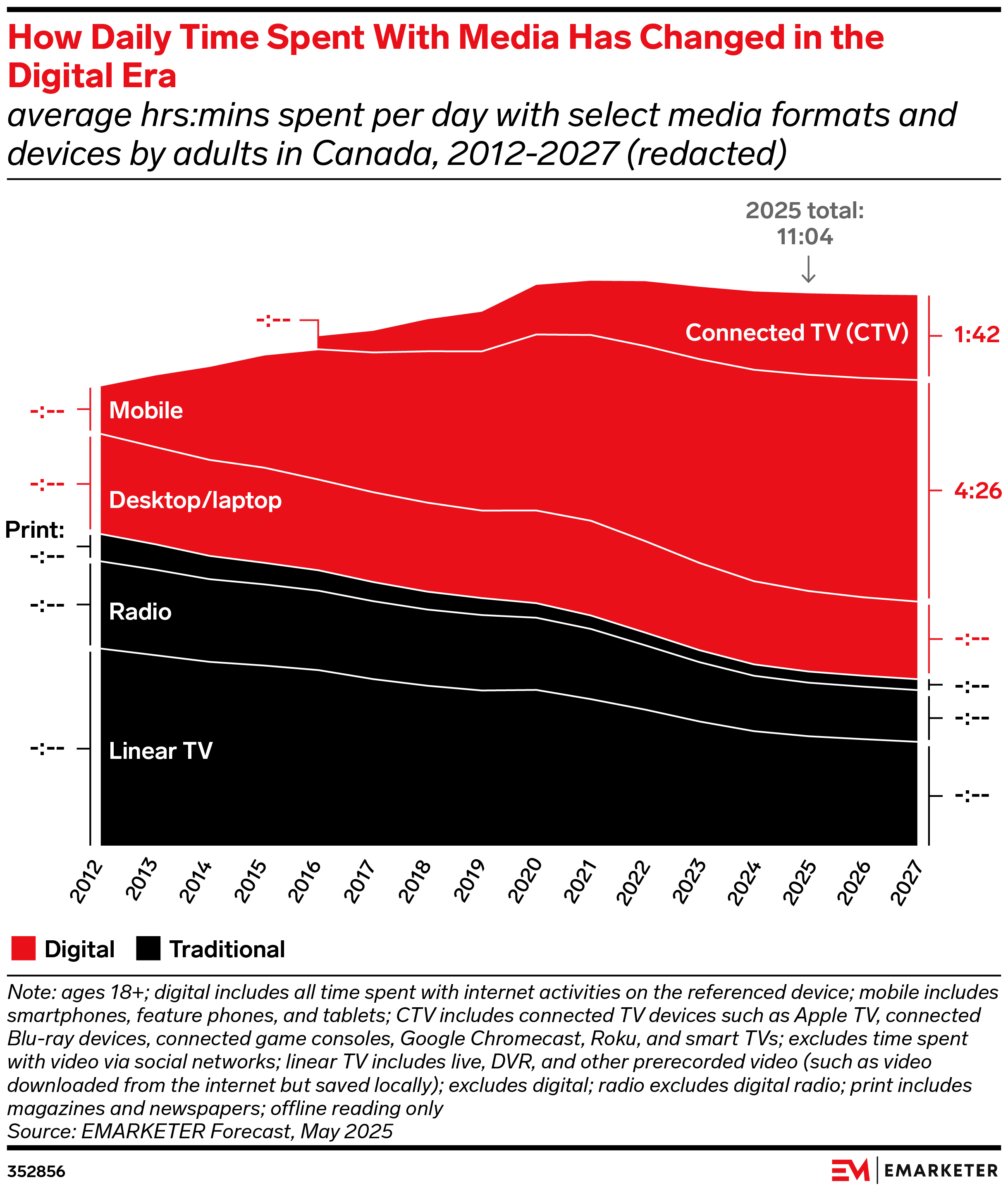 Key Stat: Average total time spent with media in Canada will be 11 hours and 4 minutes (11:04) daily this year.