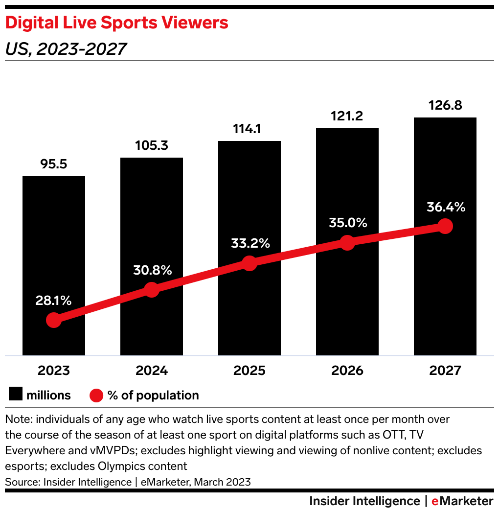 • Sports is one of the last remaining bastions for ad spending on linear TV—the NFL alone made up 93 of the 100 most-watched broadcasts in 2023. But with viewership inevitably shifting toward digital channels, a frenzy has erupted over the last two years as companies look to strike deals with sports leagues for streaming rights.