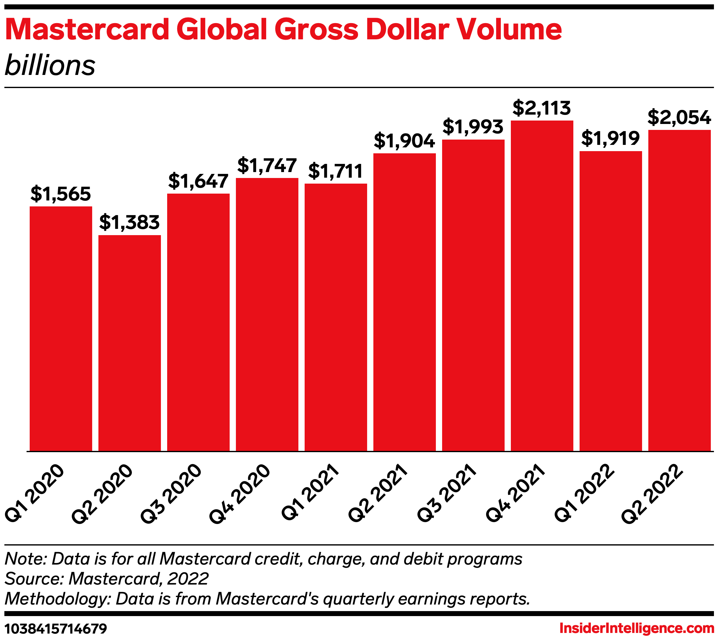 The data: Mastercard’s gross dollar volume (GDV) increased 14% year over year (YoY) in Q2, compared with 33% YoY in the same period in 2021, per its earnings presentation.
