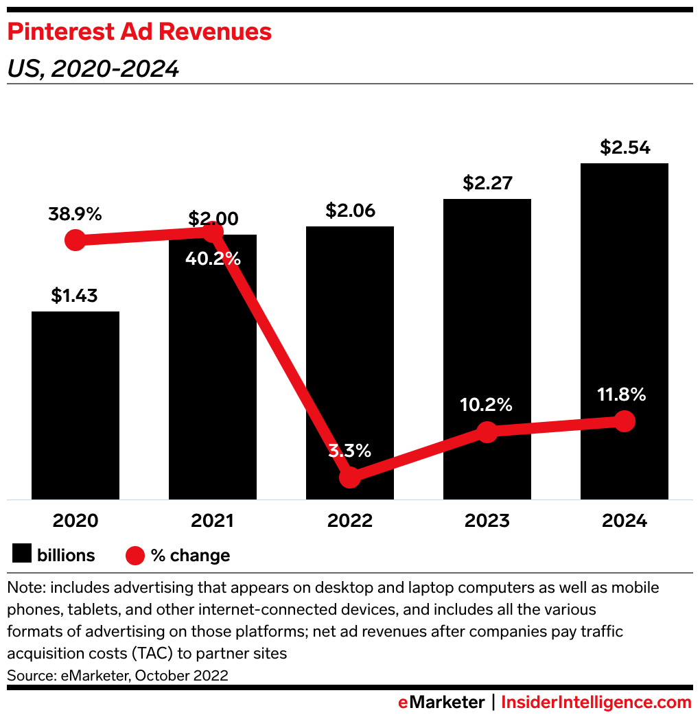 Our take: Pinterest is better positioned than most social platforms to profit from social commerce. That said, the combination of slowing user growth (just 0.4% in the US this year, per our estimates) and fierce competition from TikTok could dim its advertising appeal, making ad innovation and user engagement efforts all the more crucial.