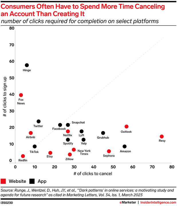 Our take: Arduous or overburdensome account cancellation steps can spark legal scrutiny but can also push consumers away and damage brand trust.