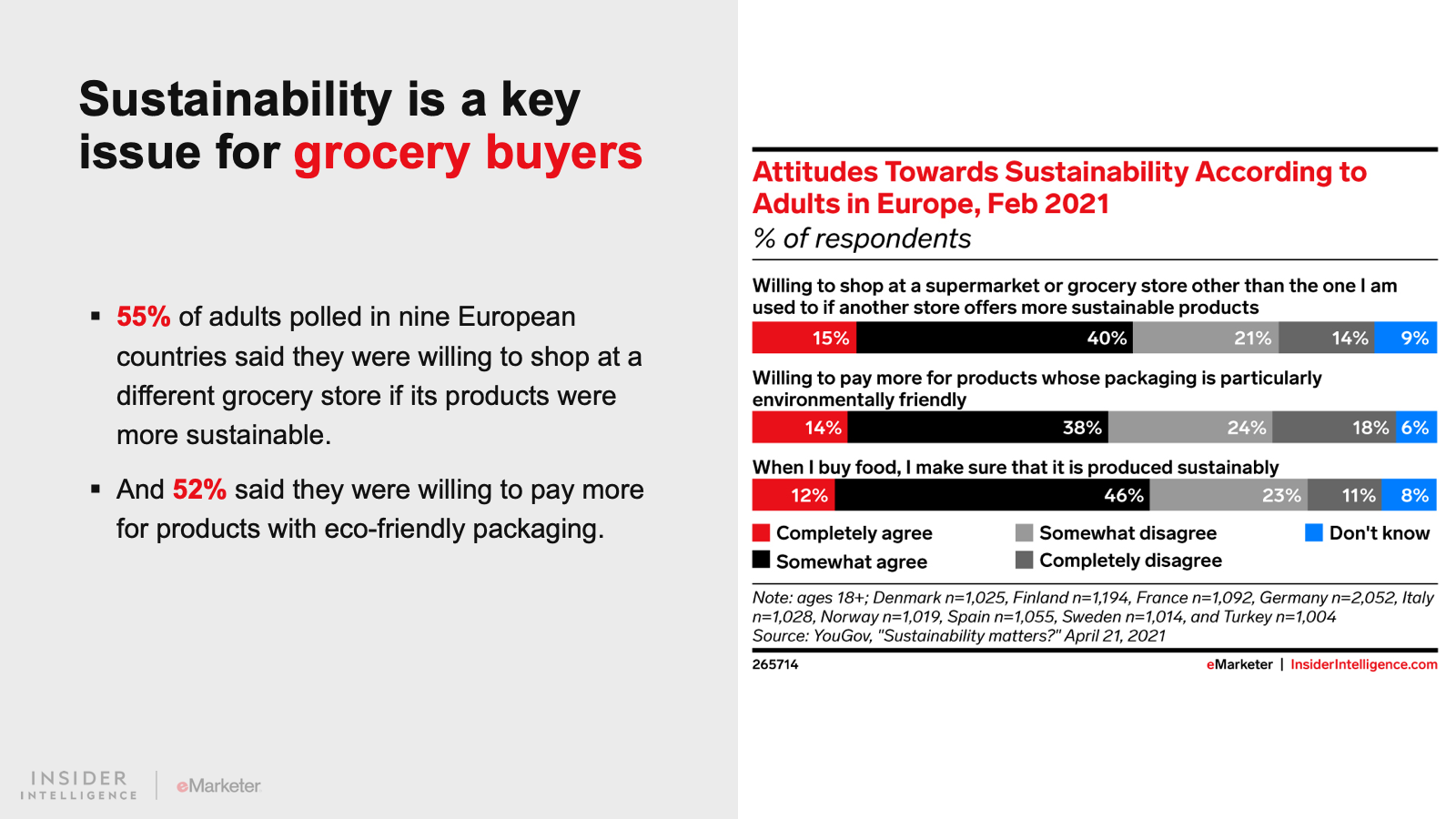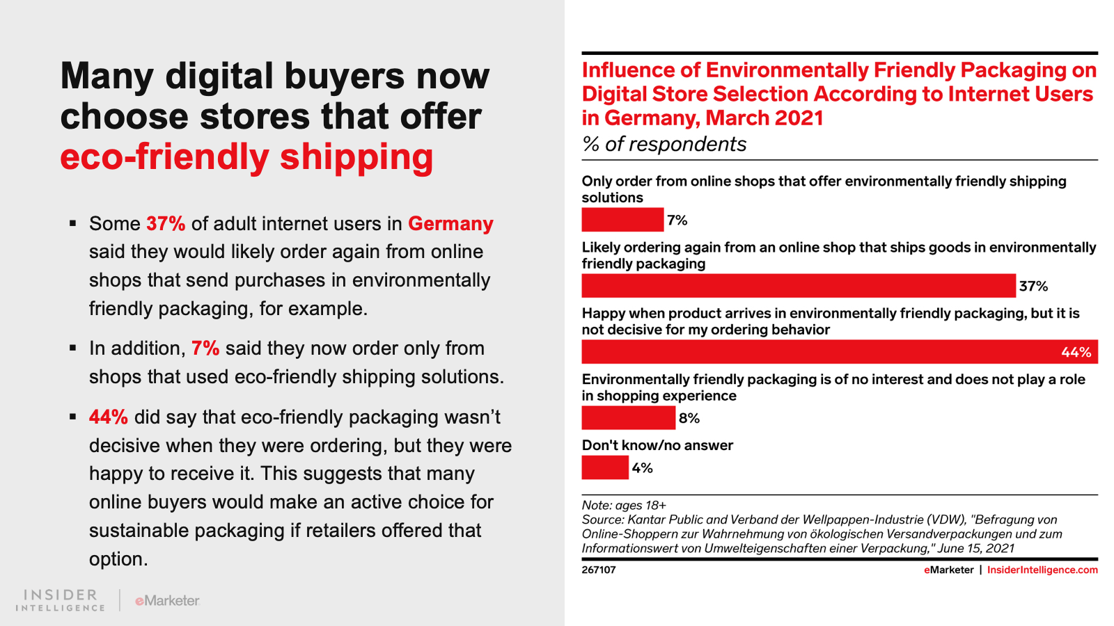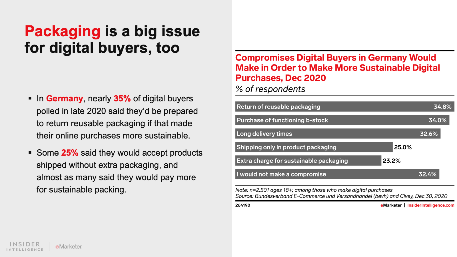 KEY STAT: In Germany, around one-third of digital buyers said they would return packaging or accept longer delivery times to make their ecommerce purchases more eco-friendly.