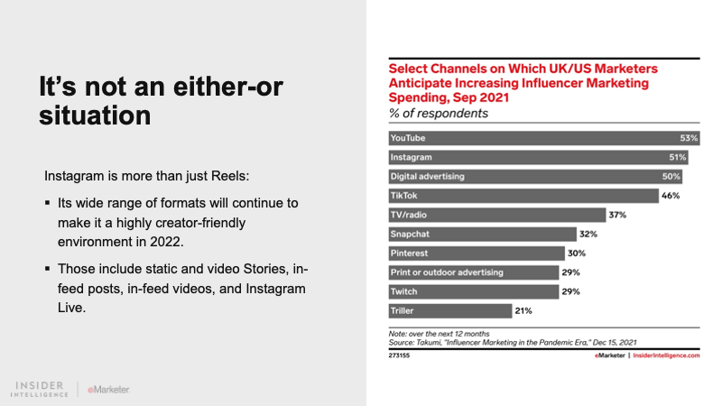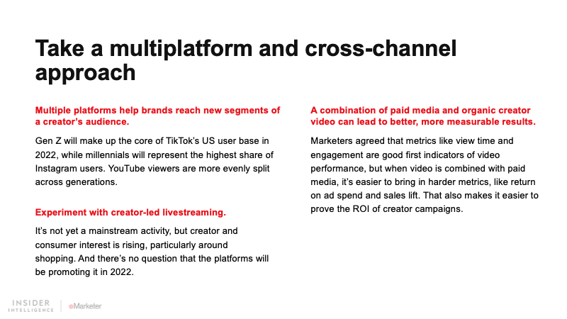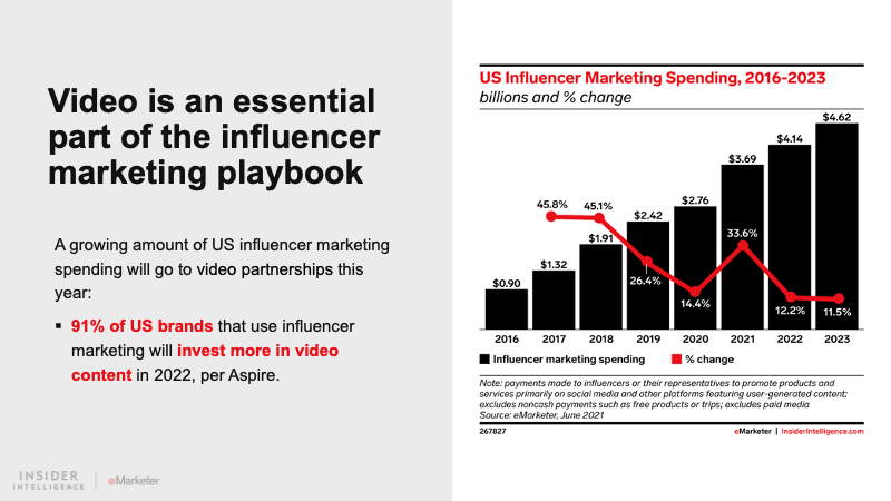 Video is an essential part of the influencer marketing playbook. While TikTok is the platform on every marketer’s mind in 2022, Instagram and YouTube—and even Facebook—will continue to provide ample opportunities to reach audiences via creator video.