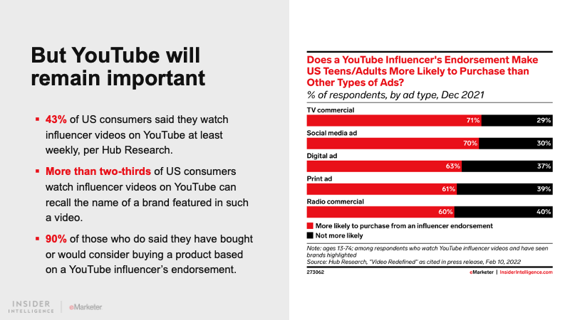 The “TikTok effect” on influencer marketing is palpable, but Instagram and YouTube are still highly relevant venues for creator video.