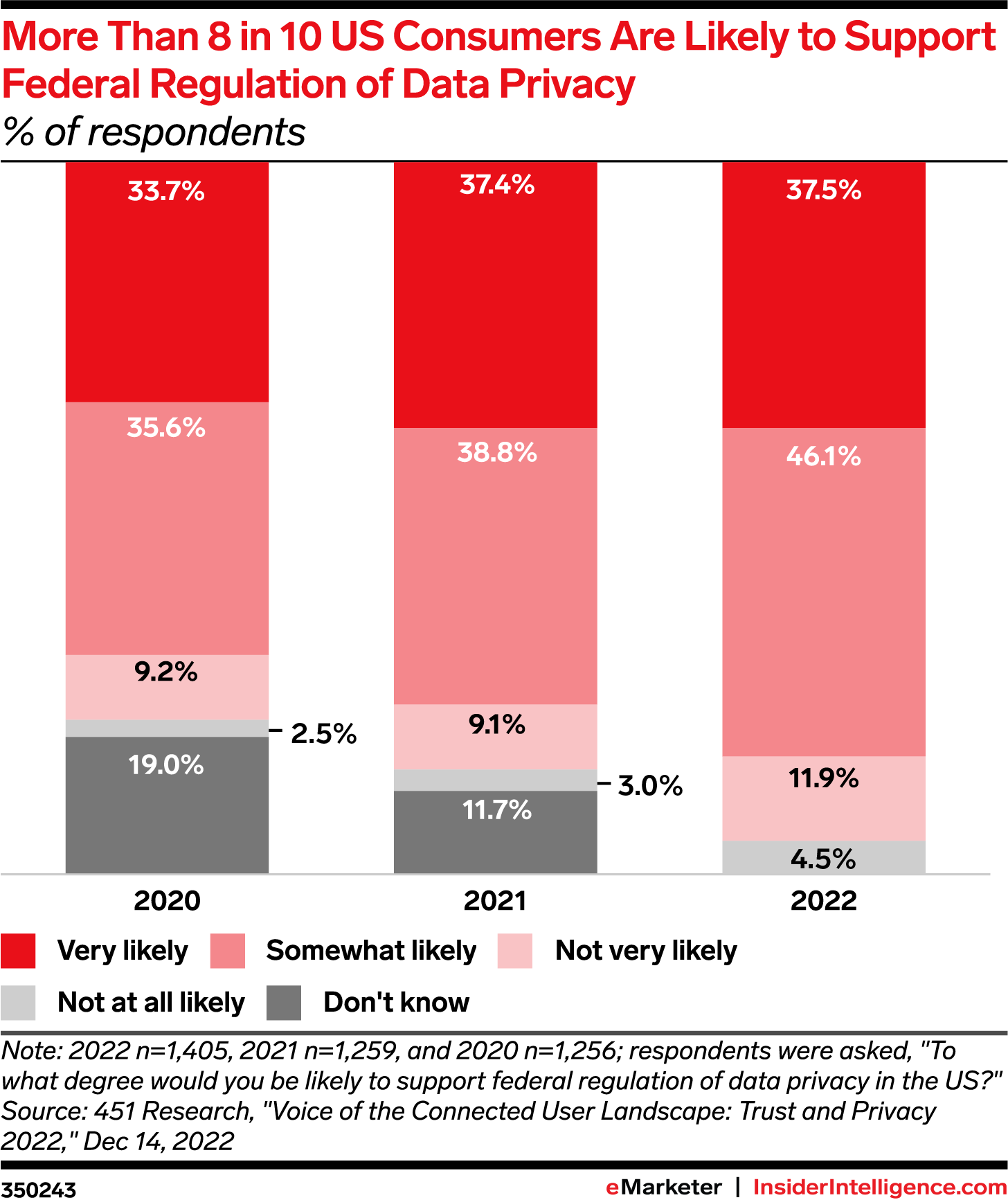 There will probably be a federal privacy law, eventually. Most US consumers support federal regulation of data privacy, and the majority has grown stronger every year since 2020, according to a 2022 report from 451 Research.